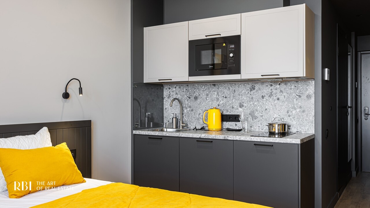 В отеле пять категорий номеров: Standard, Studio, Superior, Deluxe и Junior Suite в зависимости от площади: от 24 до 52 кв.м. Номера продаются с полной отделкой.